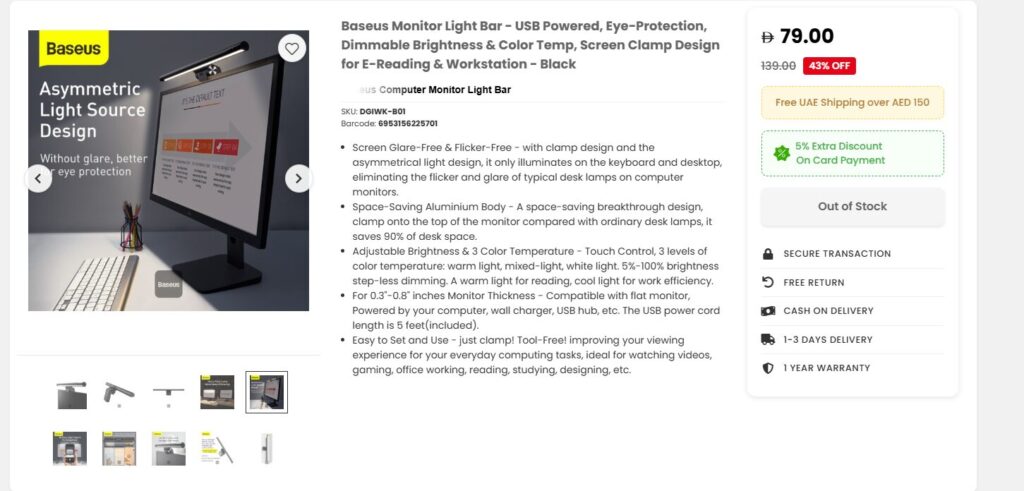 Pick: Baseus Computer Monitor Light Screenbar – clamp-on, USB-powered, adjustable brightness and color temperature, usually much cheaper than BenQ. Baseus Online