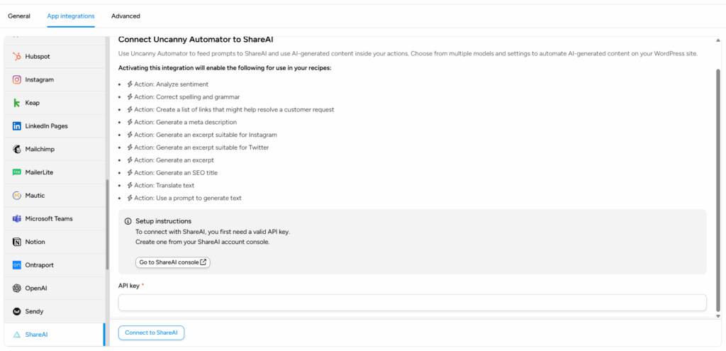 Integrating ShareAI with Uncanny Automator enables you to leverage powerful AI actions directly in your workflows. Follow the easy steps below to get started.