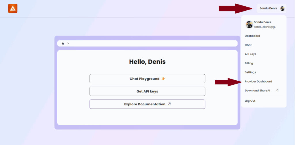 - Sign in to your ShareAI account.
