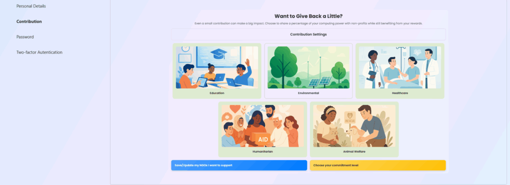 Your earned rewards can now easily support meaningful causes. Choose the percentage you’d like to share with NGOs supporting: